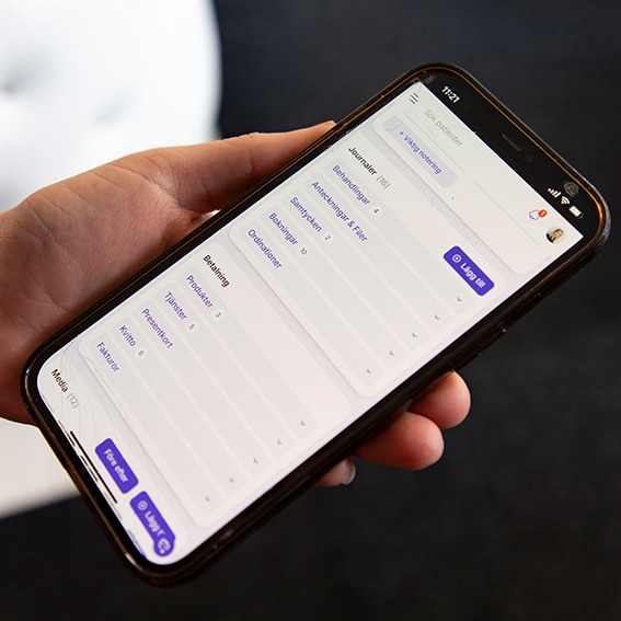 – Jag gör det mesta via mobilen. Jag kan ta bilder under behandlingen, lägga in dem direkt i journalen och radera dem från telefonen på en gång. Det är säkert, snabbt och gör att jag kan fokusera på kunden istället för på administration, berättar Sofia.